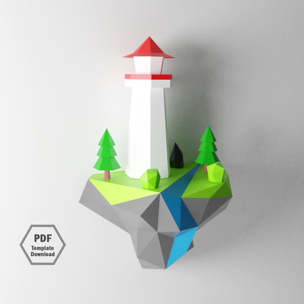Island Papercraft / Paper craft / 3D Papercraft /3D Lighthouse Island /PDF Template Download DIY/ Lowpoly Island wall decor/ Papercraft Pdf